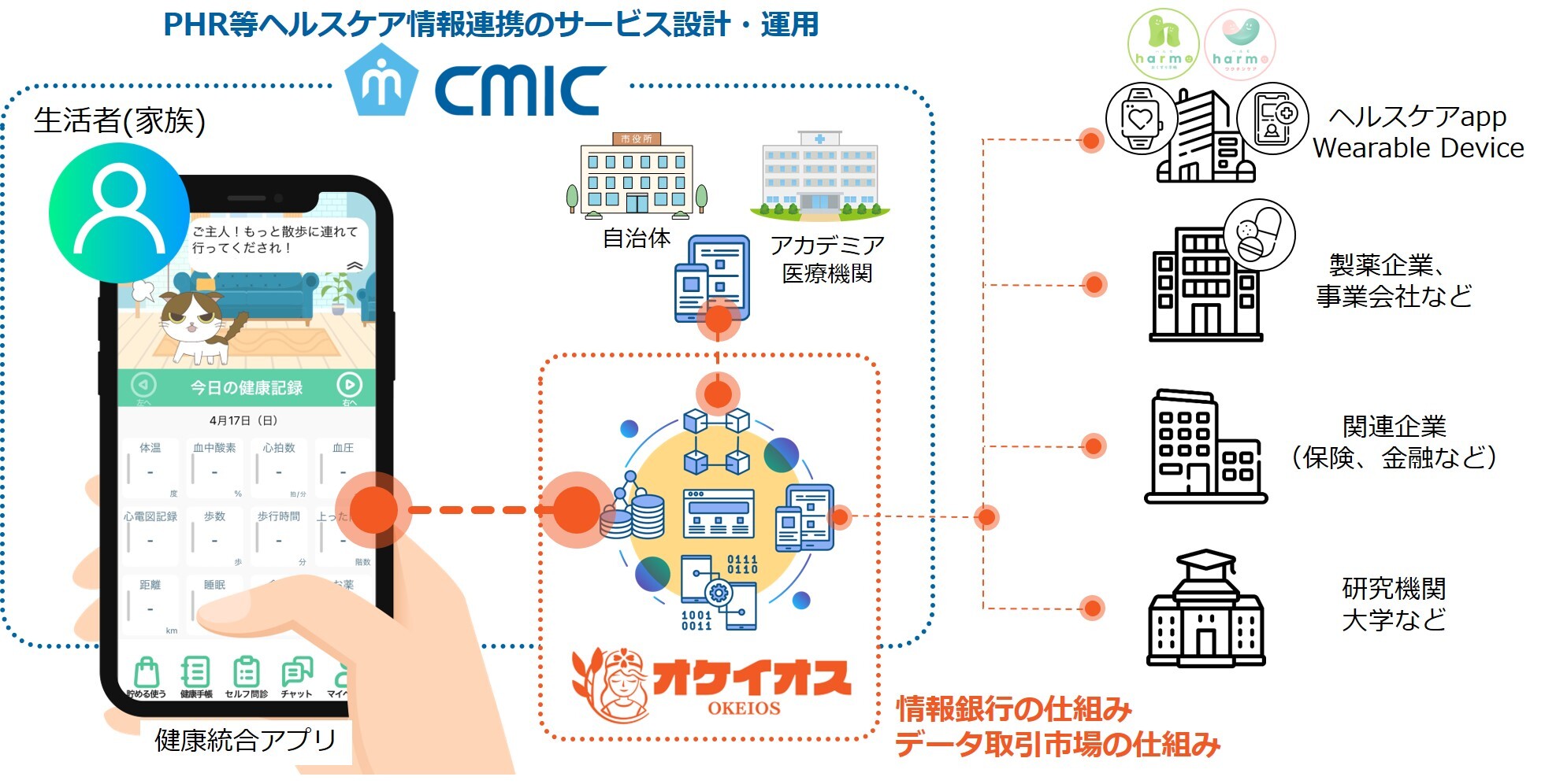 シミックソリューションズは、オケイオスとの協業により、PHR(Personal Health Record)等ヘルスケア情報連携のサービス設計から運用までを担う事業を展開いたします。