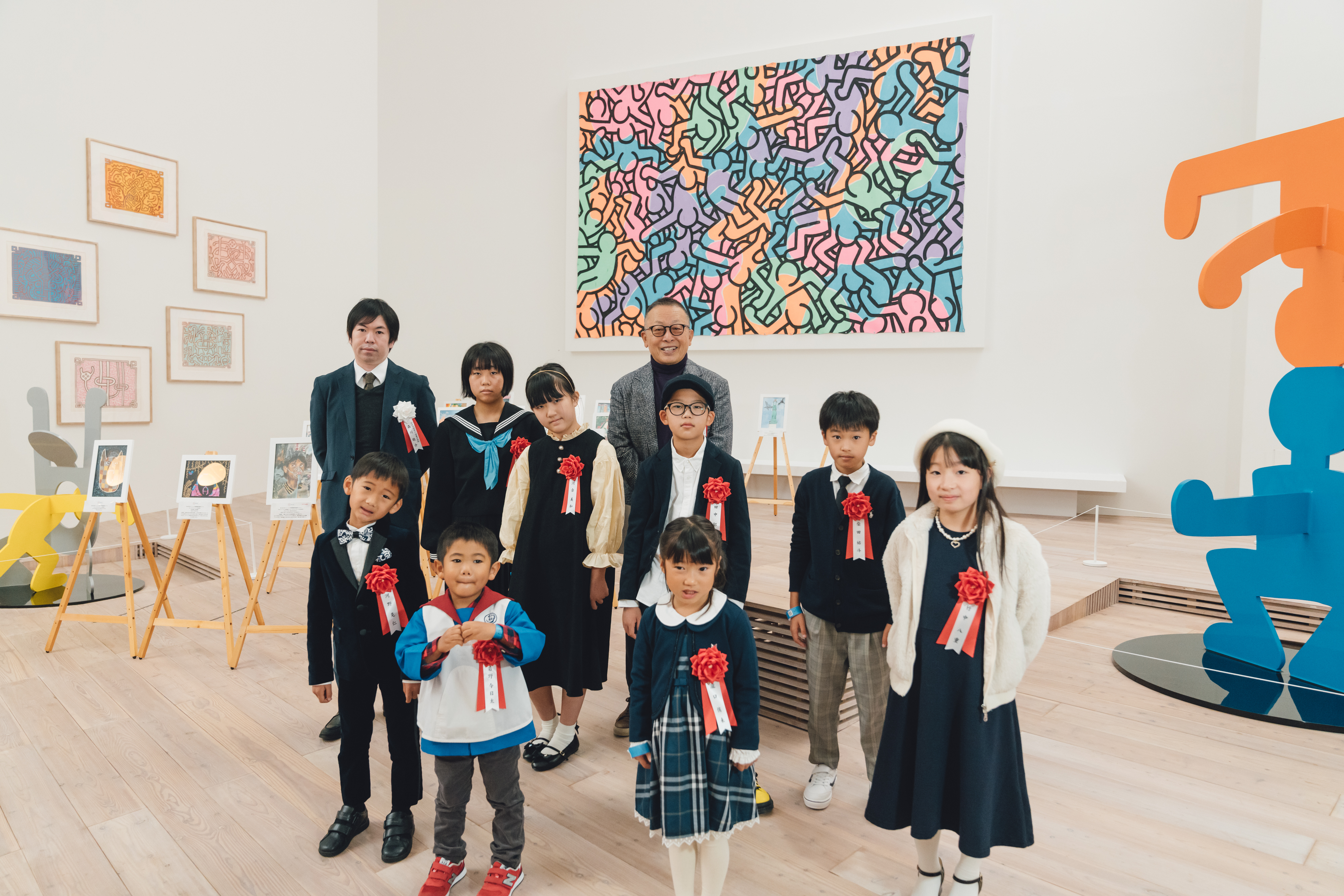 美術館は、当社創業者でCEOの中村和男が蒐集した1980年代アメリカ美術を代表するアーティスト、キース・へリングの作品を中心に「混沌から希望へ」というテーマのもと、社会への問題提起とともにその作品世界に没入できる空間となっています。生涯を通じて児童福祉教育や世界中の子どもたちとのワークショップ開催など、未来への希望と愛・平和を願ったヘリングの遺志を受けつぎ、同コンクールではアートを通して自分自身の思考や想いを自由に、無限に表現できる大切さを伝えています。