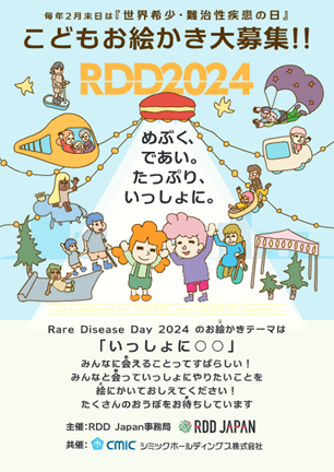 シミックグループは、RDD Japan事務局主催の「こどもお絵かき大募集!!」をサポートして今年で5年目となります。希少難治性疾患の半数はこどもが多いことから、中学生以下のお子さまに「いっしょに○○」というテーマで絵を描いていただくことを通じて、希少・難治性疾患をより多くの方々に知っていただく活動を展開します。