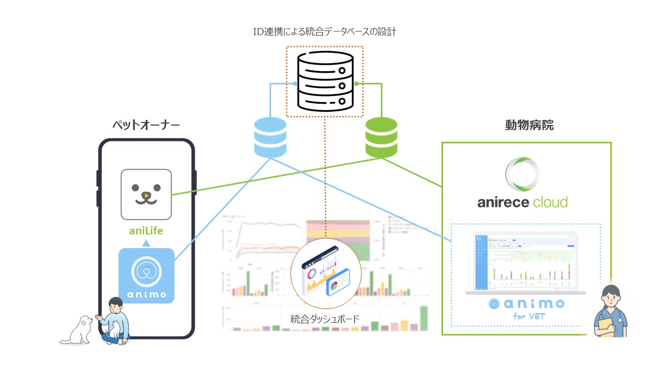 animoが開発中のanimo platform(animo owner appおよびanimo for VET)と、アニコムグループのアニコム パフェ株式会社(本社:東京都新宿区、代表取締役社長 安宅 快、以下 アニコム パフェ)が提供するアニレセクラウド等のシステム連携を通じてanimal-PHRとEHR/EMR連携を実現し、動物病院とペットオーナー間の円滑な情報共有による新たな診療体験の提供と、RWD活用の促進による個別医療の最適化を目指します。