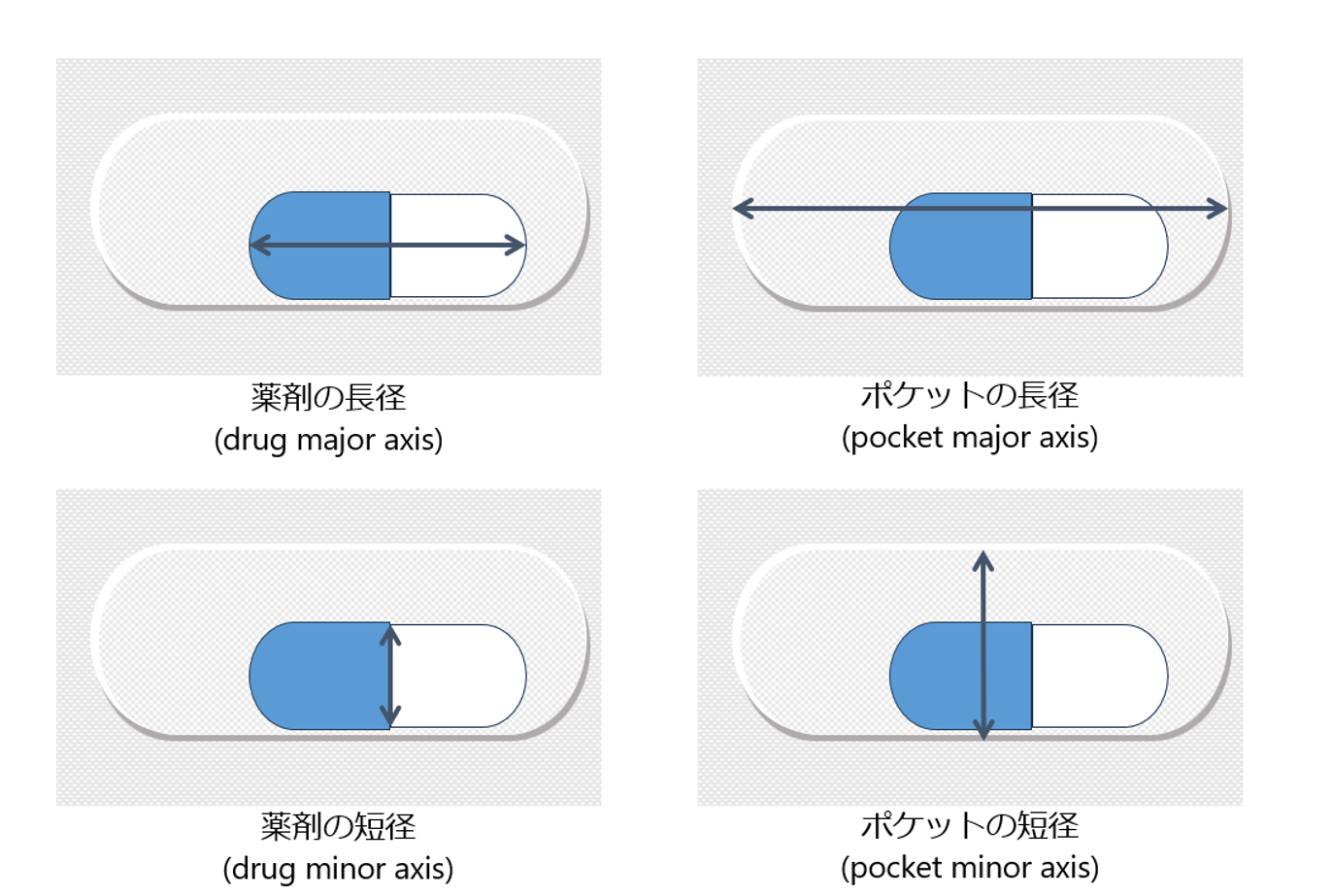 2023年3月23日~29日に、harmo利用者のうち過去90日以内に錠剤・カプセル剤のいずれかが処方されている20歳以上の男女51,175名を対象に、harmoのプラットフォームを利用して「薬の包装シートについてのアンケート」を行いました。研究への参加同意を得られた利用者から、PTPシートから取り出しづらいと感じる薬剤の有無および名称、手や指の状態に関する情報を収集し、匿名化を保持した状態でアンケート回答と回答ユーザーのPHR(調剤履歴等)を連結しました。連結した情報から、「取り出しづらい」と感じる薬剤の特定およびサイズ(下図)を調査し、PTPシートからの錠剤やカプセル剤の取り出しづらさに関する要因分析を行いました。