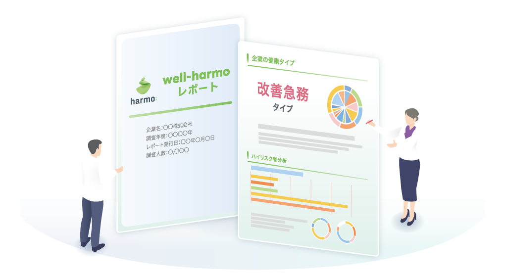 harmoが提供する「well-harmoレポート」は、企業が保有する従業員の健康診断データを基に、企業全体の健康状態や事故リスクをスコア化。専門家が経営層に直接レポート内容を解説し、組織的な健康課題の把握と具体的な対策実行までをワンストップで支援します。 詳細は、2024年11月5日発信のプレスリリースをご参照ください。