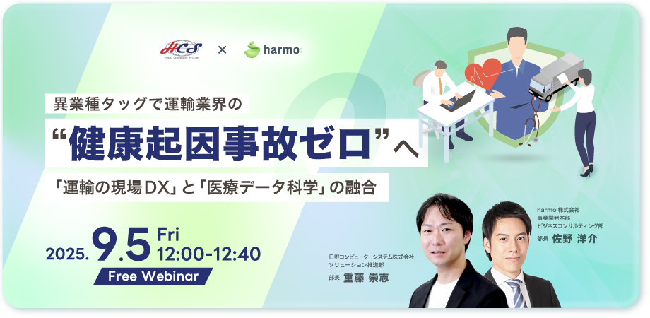 harmoと日野コンピューターシステム、 異業種タッグで運輸業界の"健康起因事故ゼロ"へ 健診・服薬データの活用で運輸業界の安全と持続可能性を支援