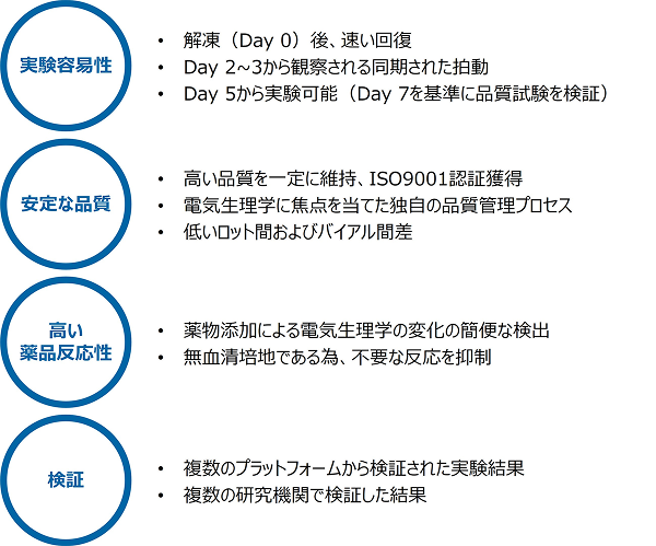 Cardiosight®-Sは心室細胞タイプのヒトiPS細胞由来の心筋細胞で、電気生理学的試験に適しています。